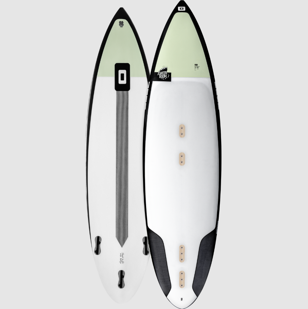 The Green Room comes with a rear traction pad, leash plug, and FCS II fin boxes.