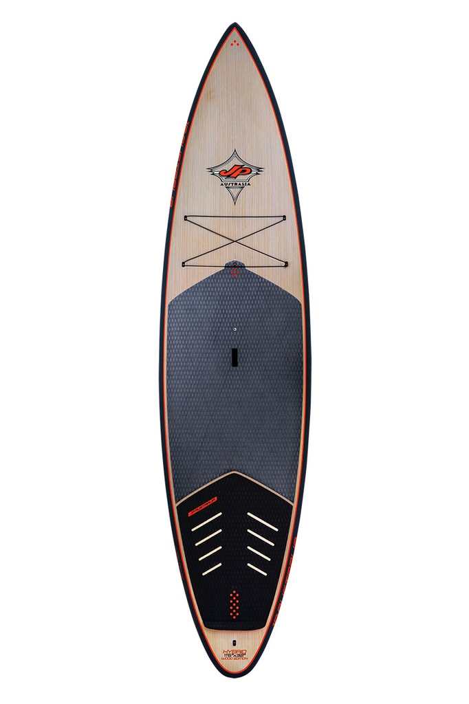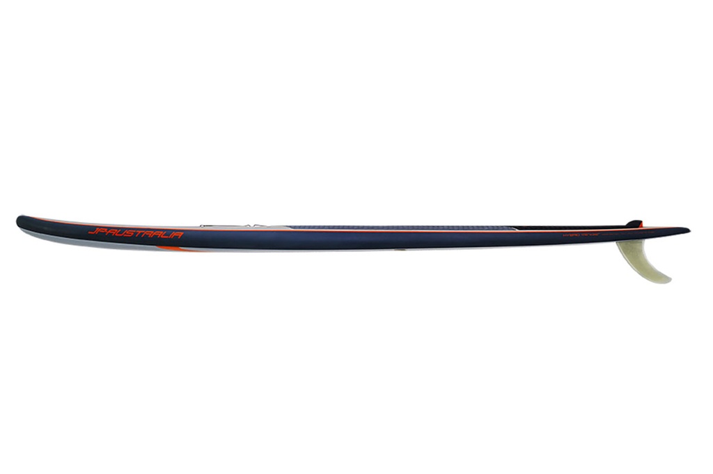 The subtle displacement bow flowing into a double concave bottom with soft thin rails and narrow tail provide a combination of good glide, stability and solid surfing characteristic. The Hybrids feature a long efficient water line offering a superior paddling sensation on flat water with the longboard type of tail for easy rail to rail transfers in the surf.
