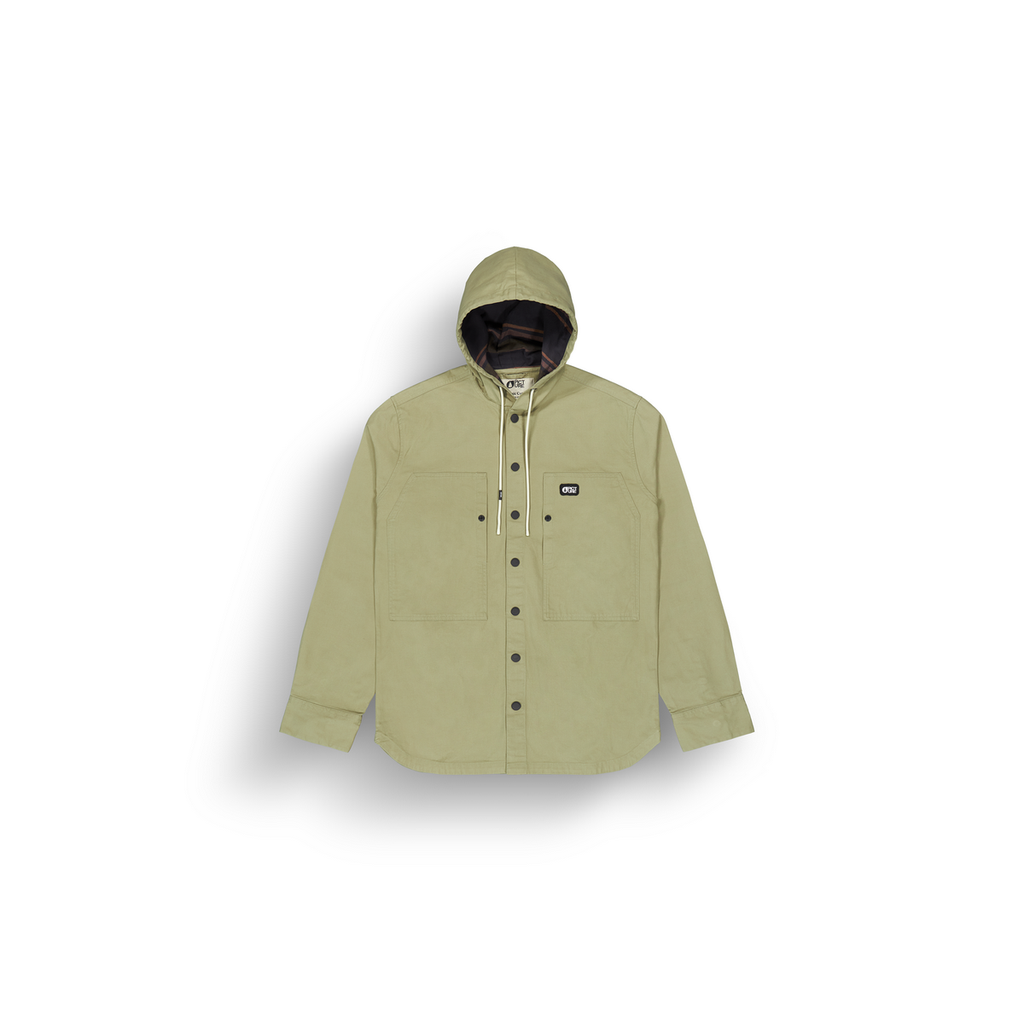 Robust shirt with hood made with organic cotton twill.