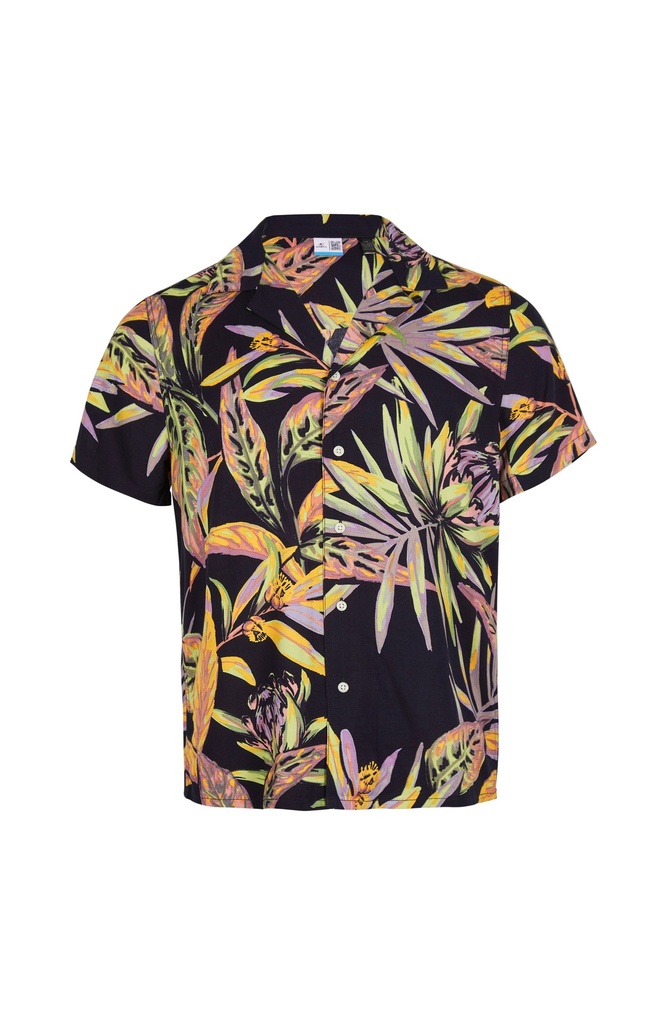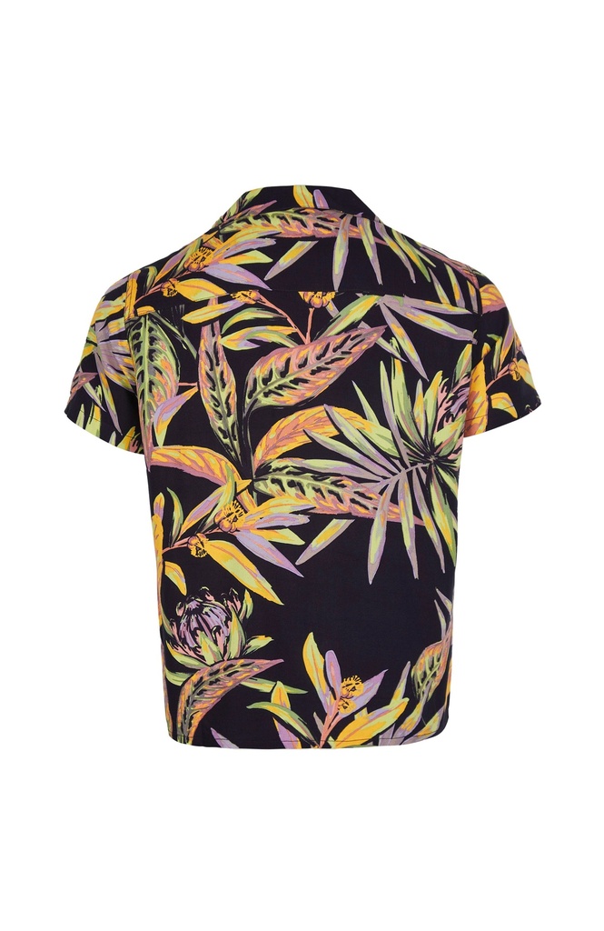 PRINT SHIRT BLACK TROPICAL FLOWER