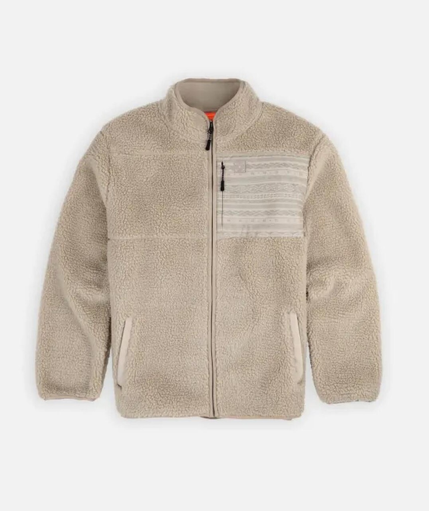 Cuello alto. Bolsillo en el pecho con tejido estampado. Bolsillos frontales para las manos. Bolsillo en el pecho con cremallera. Ribetes al tono. Cremallera completa. Sherpa reciclada de 450 g/m².