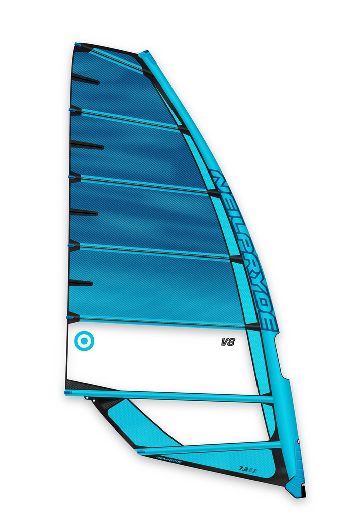Race sail performance without the encumberments of a pure slalom sail. 2 cams and a narrower luff sleeve make the V8 easier to rig, gybe and waterstart than a pure race sail. Don’t let the ease-of-use fool you though, V8 can hold its own around a racecourse and boasts even better early planning than even the most advanced slalom sails. Perfectly suited for foil or fin.